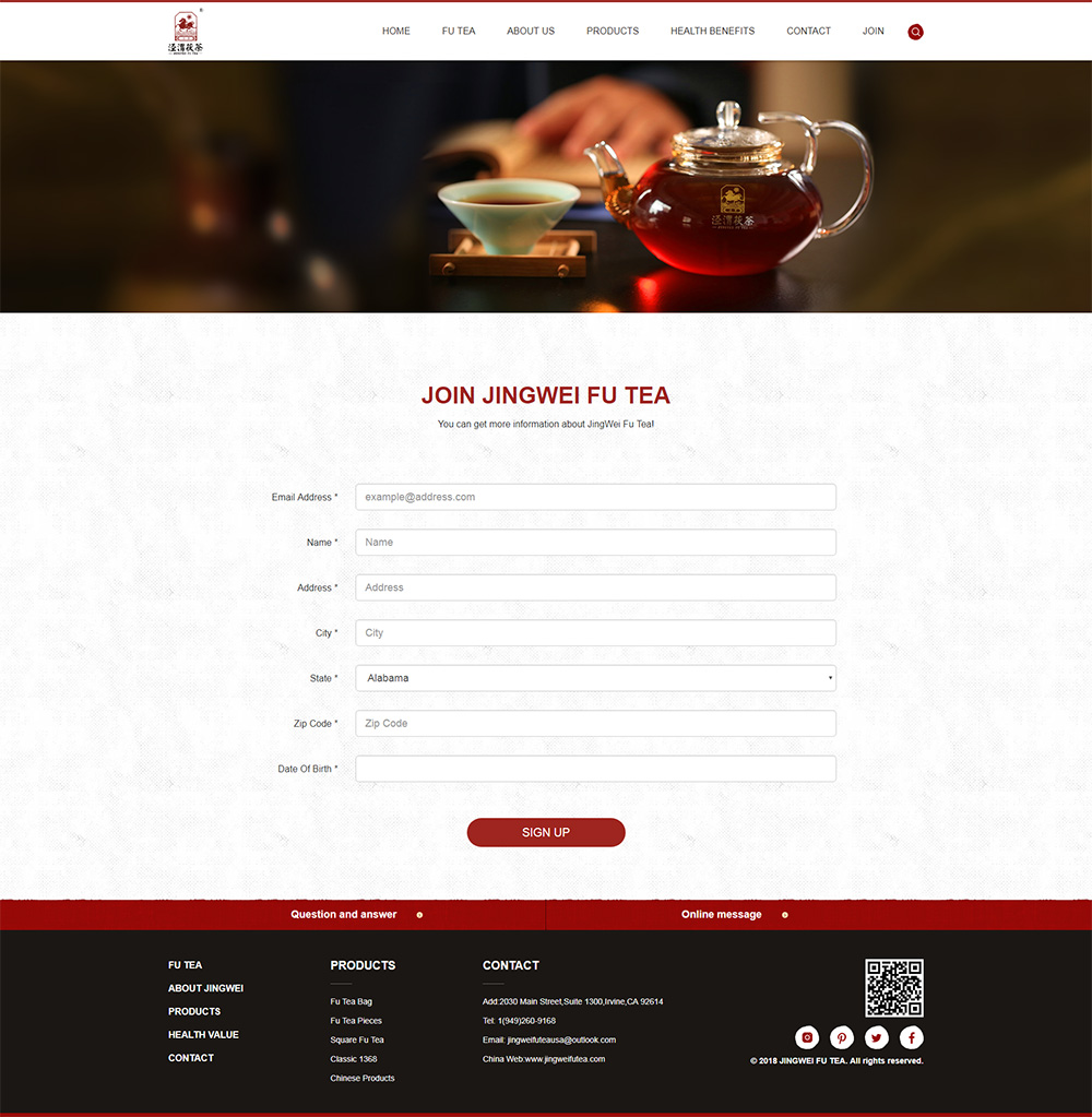 Founded in California in 2018, we, JingWei Fu Tea USA Inc. is the first wholly-owned subsidiary of Xianyang Jingwei Fu Tea Co., Ltd, a famous Chinese tea enterprise and a leading enterprise in national agricultural industrialization, and is mainly responsible for the brand construction and product sales of Jingwei Fu Tea in America.