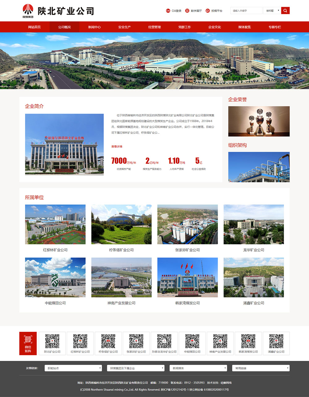 陜北礦業(yè)公司是陜煤集團在陜北國家能源基地規劃建設的大型煤炭生產(chǎn)企業(yè)。公司成立于1988年。2018年4月,根據陜煤集團決定,陜北礦業(yè)公司和神南礦業(yè)公司合并,實(shí)行一體化管理。目前公司下屬紅柳林礦業(yè)公司、檸條塔礦業(yè)公司、張家峁礦業(yè)公司、中能煤田公司、孫家岔龍華礦業(yè)公司、產(chǎn)業(yè)發(fā)展公司、韓家灣煤炭公司、涌鑫礦業(yè)公司和煤炭科技孵化公司九個(gè)單位。