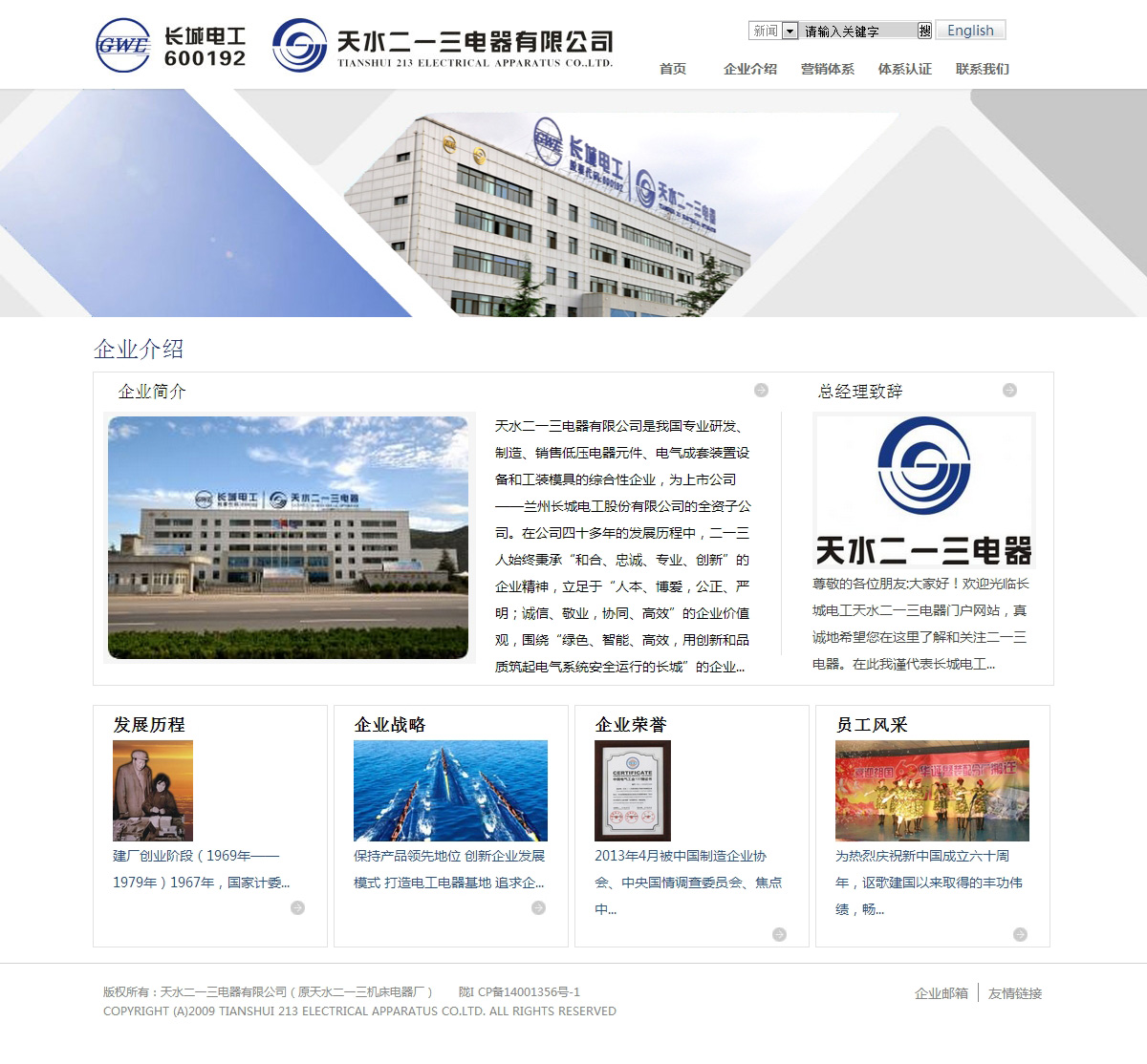 天水二一三電器有限公司是我國專(zhuān)業(yè)研發(fā)、制造、銷(xiāo)售低壓電器元件、電氣成套裝置設備和工裝模具的綜合性企業(yè),為上市公司——蘭州長(cháng)城電工股份有限公司的全資子公司。